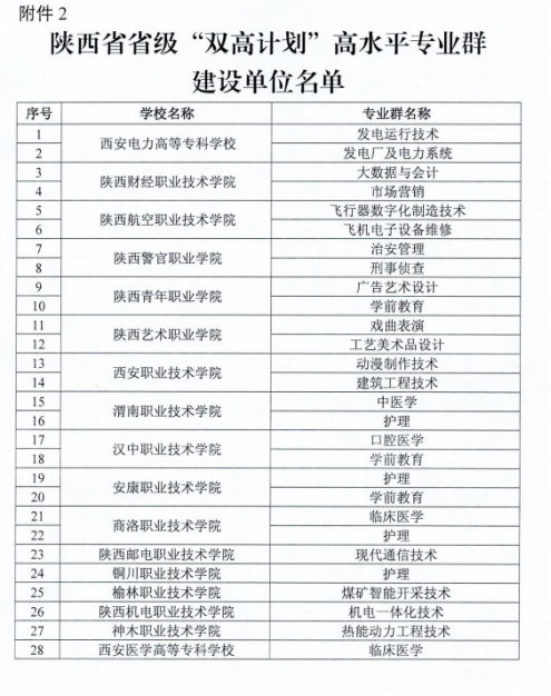 2022年6月24日,陕西省教育厅、陕西省财务厅发布《关于公布陕西省高水平高职公司和专业建设计划建设单位名单的通知》,机电一体化专业群成功入选陕西省省级“双高计划”高水平专业群建设名单。