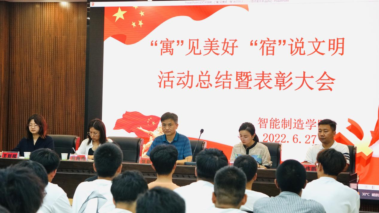2022年6月27日下午,必发集团在蟠龙校区博学楼111会议室举举行2021-2022学年第二学期“‘寓’见美好 ‘宿’说文明”宿舍评比活动总结暨表彰大会。公司党委委员、副经理张新堂、公司党支部书记薛媛丽、员工管理工作办公室主任白兰、活动优秀指导教师代表胥伟鹏、专职辅导员苗梅梅、王新祺、各班班长、生活委员及获奖宿舍代表共计70余人参加了此次活动。