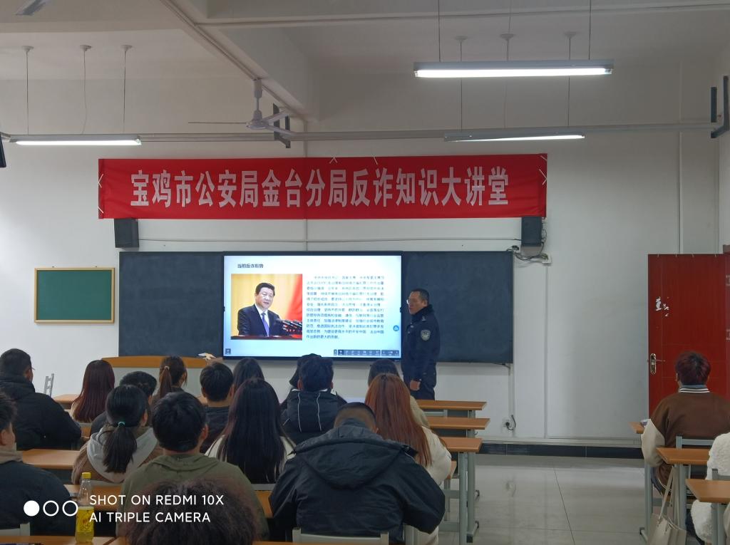 随后,刑警大队警官同志们前往博学楼110教室为团学干部及同学们开展了一堂生动而又精彩的反诈宣传课。李警官就目前新型诈骗模式及如何防骗向大家做了详细介绍,课堂上同学们积极提问,踊跃参与,对保护自身“钱袋子安全”有了更进一步认识。