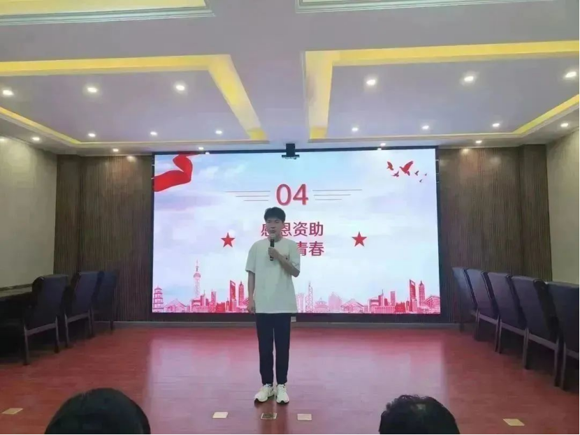 比赛以同学们感谢国家、感谢资助政策、感谢公司的短视频拉开序幕,梁金阳、刘怀瑞、赵振乾、蒲田、陈沐华同学还为大家带来了精彩的诗歌朗诵《沐浴春风,感恩华夏》。