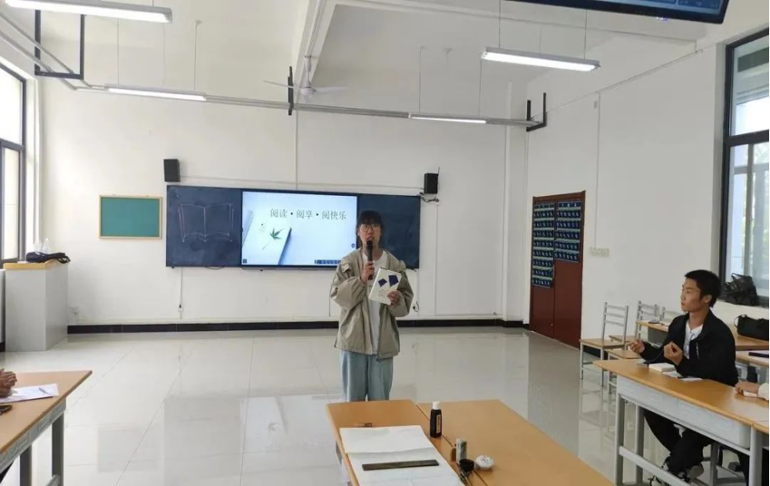“读万卷书,行万里路”。接下来20机电五年4班的全体同学为大家带来了朗诵《少年中国说》,彻底点燃了同学们对读书的激情。