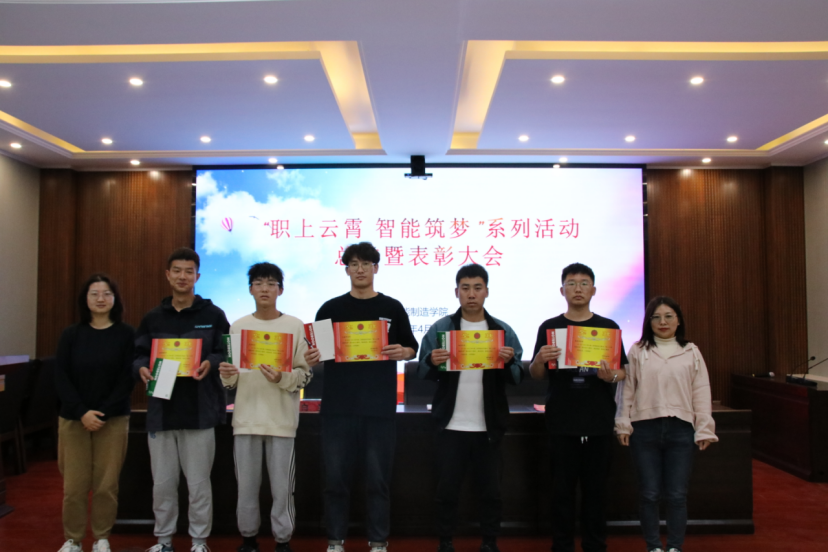 4月21日下午,在博学楼111会议室开展了“职上云霄 智能筑梦”系列活动总结暨表彰大会,公司党支部书记薛媛丽、员工管理工作办公室主任白兰、辅导员王新祺、苗梅梅、周川力出席本次活动,获奖员工及21、22级三年制,19、20五年制各班员工代表参加本次活动,22智能控制1班李雨笑同学做主持。首先,薛书记对本次活动的成功开展表示祝贺,同时对同学们提出要求与希望:一是先就业,再择业;二是快速适应,调整心态;三是吃苦耐劳,兢兢业业。其次,白兰老师及几位辅导员为获奖员工颁发奖状及奖品,对选手表示鼓励与祝贺。最后,优秀员工代表21机电技术3班尹小勇同学做获奖感言,呼吁同学们增强职业规划意识,充实老员工活,提升就业竞争力,成为服务社会的技术技能型人才。