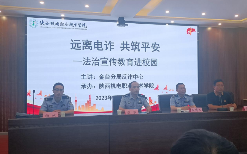 为切实做好全院师生防电信、网络诈骗的安全工作,加强全院师生的反诈意识,提高识骗、防骗的能力,有效遏制校园电信网络诈骗案件的发生。6月15日上午,保卫处联合宝鸡市公安局金台分局反诈中心专家在蟠龙校区博学楼111会议室开展了“校园安全生产月暨防范电信网络诈骗”专题讲座活动。宝鸡市公安局金台分局反诈中心大队长狄亮,蟠龙派出所所长庞建军,金台分局反诈中心专家杨帆警官及公司100余名员工参加了讲座。活动由保卫处副处长常小凯主持。