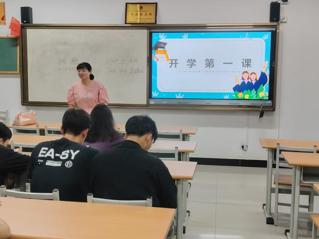 当日晚,各班级开展了以“新学期、新起点、新征程”为主题的“开学第一课”班会活动。各辅导员、班主任老师班会前精心准备,了解员工情况,围绕主题,从学风建设、各类安全、心理调适、新学期学业规划等全方面为员工上了一堂深刻且有意义的主题班会课,希望同学们在新的学期,尽快调整好状态,以更加饱满的热情和更加坚定的信念投入到新学期的学习中去,明确新学期的学习目标,逐步实现跨越式的成长与蜕变,为大一的新生做好榜样。