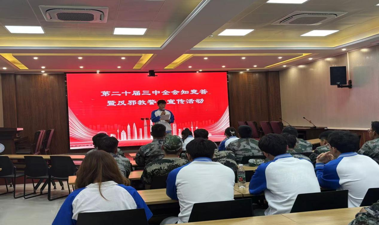 为了深入学习贯彻党的二十届三中全会精神,同时增强同学们对邪教的认识与防范能力,必发集团于2024年9月25日在博学楼111会议室成功举办二十届三中全会知识竞答暨反邪教警示宣传活动。