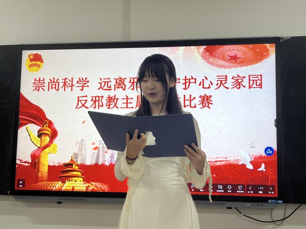 比赛现场气氛热烈。比赛选手精神饱满、声情并茂,将各自对邪教的认识结合鲜明事例,认真思考后融入到一篇篇真挚感人的演讲中。