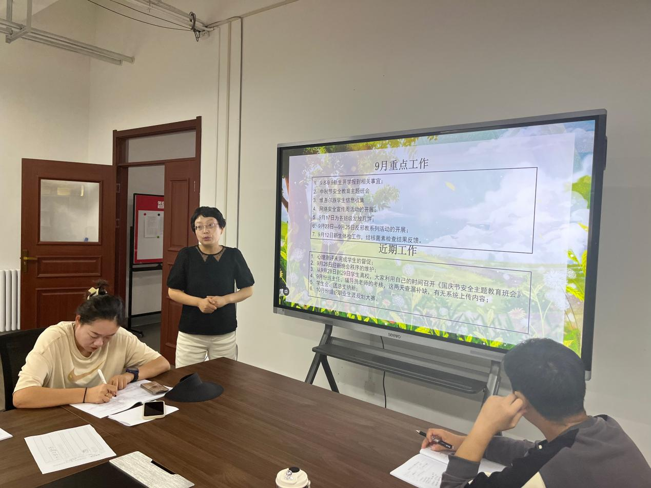 随后,白科长对9月份重点工作进行回顾。并对近期工作进行安排部署。各位辅导员老师分别汇报自己所负责班级的员工工作情况。分享在班级管理、员工思想教育、心理健康辅导等方面的宝贵经验和有效做法,并提出工作中遇到的问题和困难。针对这些问题,与会人员展开了深入的讨论和交流,共同寻求最佳解决方案。