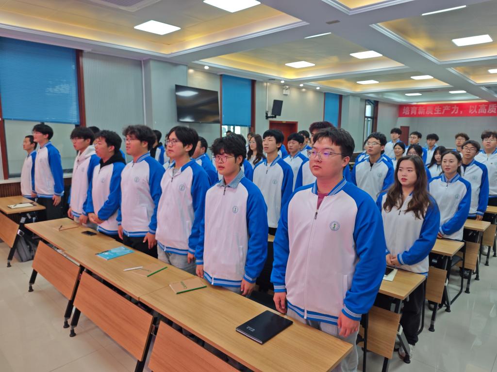 在激昂的团歌声中,开班仪式正式开始。团总支书记白兰宣读团课培训要求,在学员考勤、课堂笔记、日常行为以及团课考试等方面提出具体要求。白老师表达了对同学们的殷切期望,希望同学们严格要求自己,努力争取加入共青团,以更饱满的热情和更坚定的信念投入团的学习与实践。