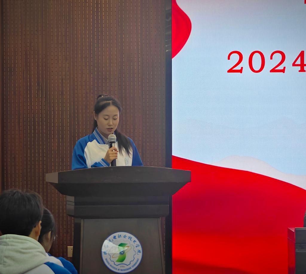 接着,培训学员代表24 电气技术 3 班马文艳做题为《奋进正当时,向着共青团出发》表态发言,表达了对入团的渴望和积极参与培训的决心,承诺将以此次活动为契机,在未来严格要求自己,努力学习,积极进取,用实际行动践行青春的誓言。