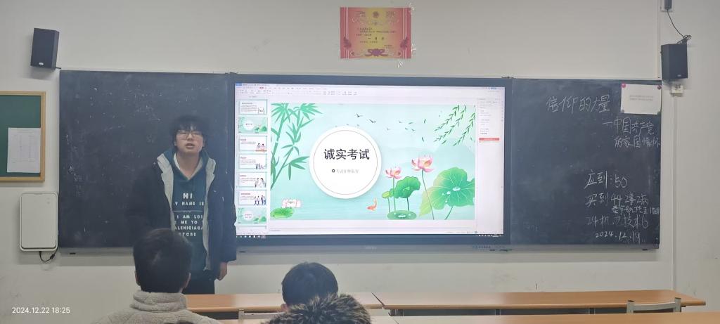 同学们在讨论环节积极发言,分享自己对诚信考试的理解与感悟。24机电技术4班的刘玉杰同学表示:“诚信是中华民族的传统美德,考试是对我们学习成果的检验,只有凭借真实的成绩,才能准确了解自己的学习状况,为今后的学习提供方向。作弊不仅是对自己的欺骗,更是对其他努力学习同学的不公平。”