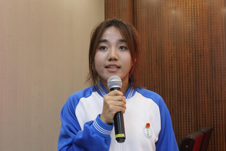 23机电技术1班张叶同学作为新团员代表发言,她表示将牢记入团誓言,继承和发扬共青团的优良传统,在共青团这个光荣的组织里不断成长和进步。