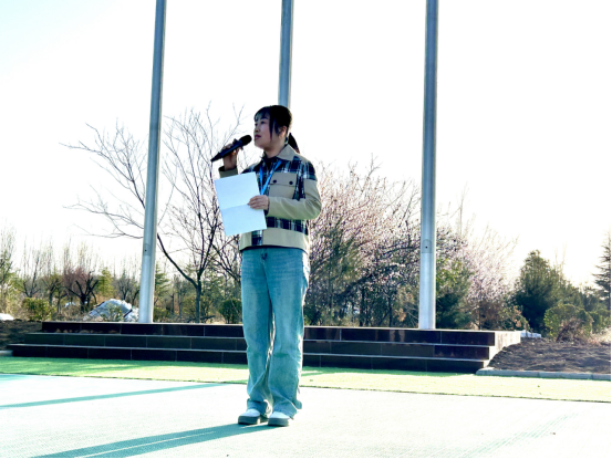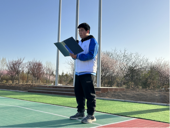清晨,伴随着初升的朝阳,升旗仪式正式开始。英姿飒爽的国旗护卫队迈着整齐划一的步伐,护送着鲜艳的五星红旗走向升旗台。在雄壮的国歌声中,全体师生肃立注目,五星红旗冉冉升起,迎风飘扬。