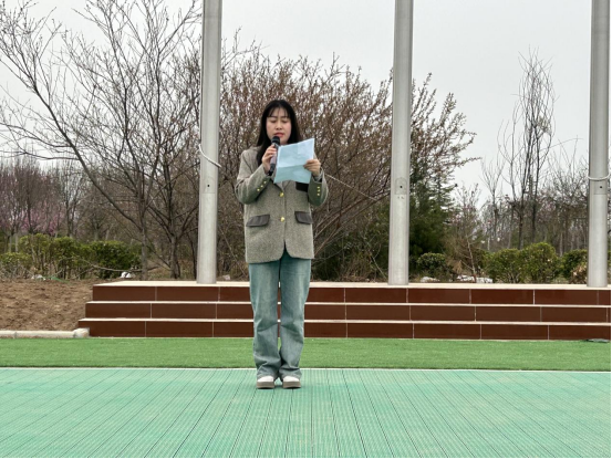 破晓时分,晨光初照,英姿飒爽的旗手们迈着铿锵有力、整齐划一的步伐,护卫着五星红旗走向升旗台,他们身姿挺拔,眼神坚定,每一步都踏出了对祖国的敬重与热爱。激昂雄壮的《义勇军进行曲》响起,升旗手振臂一挥,五星红旗迎着微风,冉冉升起。现场师生庄严肃立,面向国旗行注目礼,齐声高唱国歌,歌声激昂,直破云霄,唱出了对祖国的深沉热爱。