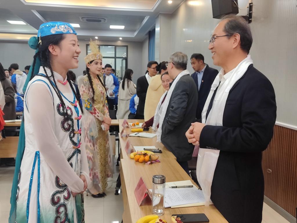 座谈会伊始,薛媛丽在开场中提到:“校园里,各民族同学朝夕相处,一支舞蹈、一首歌曲,都是文化的小火花;今天的座谈会,就是要把这些火花聚成火炬,照亮彼此的成长之路。”她鼓励同学们敞开心扉,分享家乡故事、民族文化和心里话,在智能制造的舞台上展现多彩的青春。