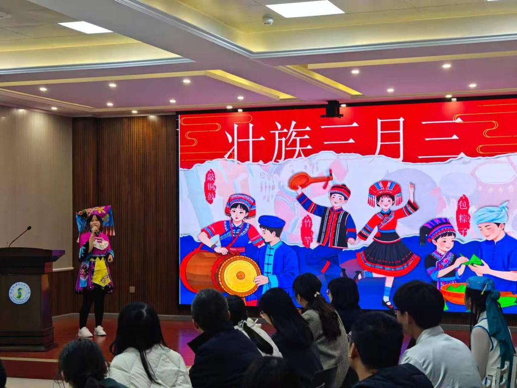 会议第三项为民族文化分享环节,壮族员工李小青、蒙古族员工庄艺先后登台。李小青详细介绍壮族传统节日“三月三” 的起源传说、歌圩习俗与特色美食,庄艺则生动讲述蒙古族那达慕大会的历史渊源、摔跤赛马等核心活动。精彩分享让在场师生深切感受中华民族文化的多样性与独特魅力,领略不同民族文化的博大精深。