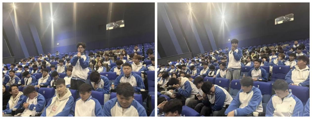随后,全体同学共同观看爱国谍战影片《惊蛰无声》。该片聚焦当代国家安全领域,讲述了我国新型战机核心机密遭遇境外间谍窃取,国安战士挺身而出、坚守使命,在无声的战线上与敌对势力展开殊死较量,誓死捍卫国家机密与国防安全的动人故事。观影过程中,同学们全神贯注,被影片中紧张的剧情、国安战士的忠诚担当与家国大义深深触动。