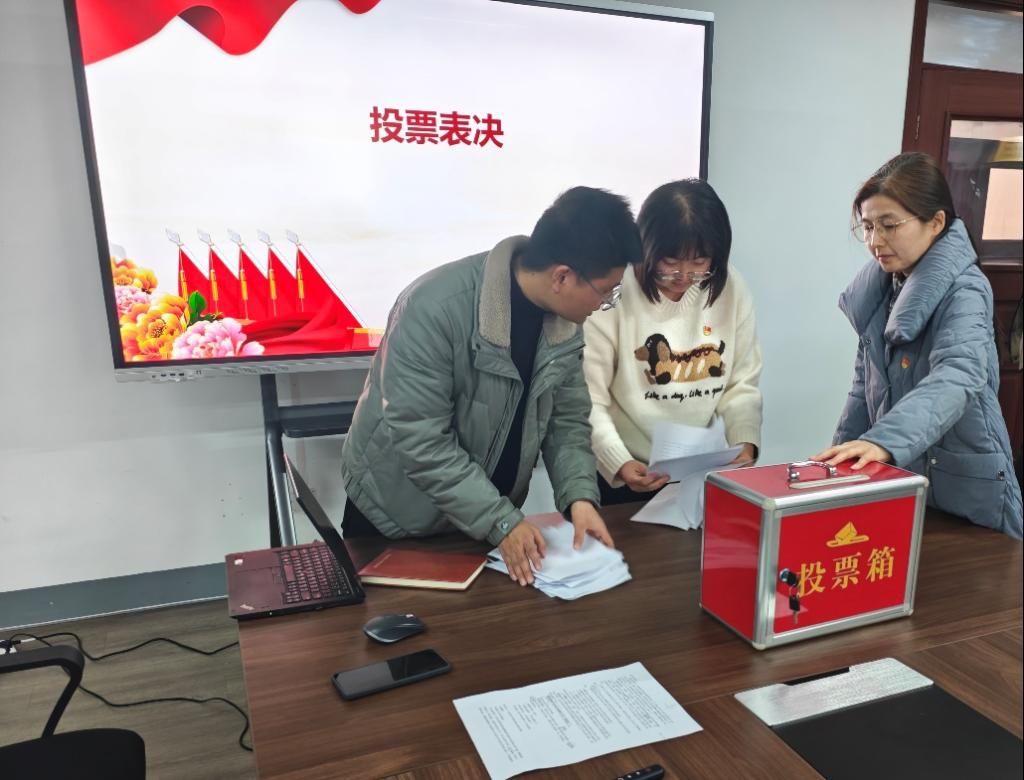 会议第四项,党支部副书记高白川同志宣读中共必发集团委员会组织部关于23 位同志的预审意见。经支部委员会审慎研究提议,姚莹同志出任监票人,赵卓越、王新祺同志担任计票人,全体党员审议并表决一致通过。在监票人严格监督下,计票人开展接收预备党员表决票发放、回收与统计工作。