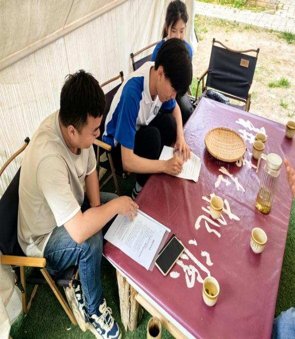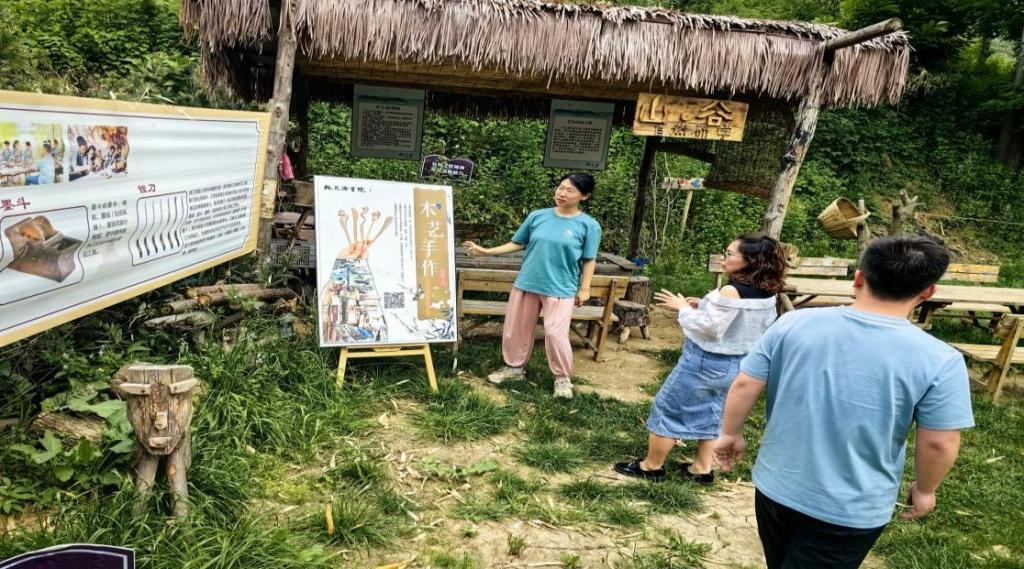 在桃花源基地,团队成员得到了山谷自然研学导师木兰老师的热情接待和详细讲解。成员参观了非遗实践体验基地,仔细聆听了木兰老师对当地非物质文化遗产的介绍。以下是调研现场的一瞥: