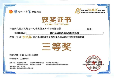 此次竞赛,在公司精心组织策划、参赛学子全心备赛、指导老师细心指导下,公司推荐的参赛作品荣获陕西省二等奖1项,三等奖1项,斩获佳绩。