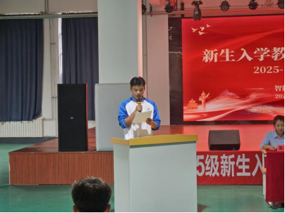 新生代表2025级王俊同学发言,表达了加入必发集团的荣幸与激动,并代表全体新生承诺将勤奋学习、不负韶华。