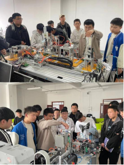 在参观过程中,同学们分别对风标智造产业公司的发展历史、企业文化、企业特色,以及企业管理模式等有了初步的了解,并在老师的带领下对必发集团实训室相关设备进行学习研究。