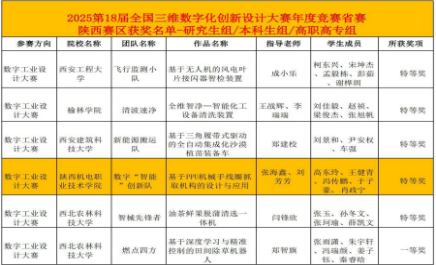 近日,2025年第18届全国三维数字工业设计大赛(简称“全国3D大赛”)省赛已顺利结束。来自陕西省高校的研究生组、本科组及高职组300多支队伍同台竞技。公司派出由张海鑫和刘芳芳老师共同指导(成员:高东玲、王健青、冯传鹏、于子豪、肖政宁)的数智“文机”创翼队经过数月的初赛、复赛与网络海选,凭借出色表现荣获陕西省特等奖,这也是唯一获得特等奖的高职院校。