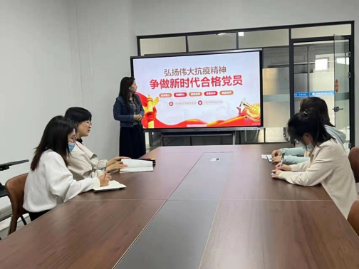 薛媛丽书记表示,在今年年初疫情防控期间,公司党支部党员深刻领会抗疫精神的重要意义,践行初心使命,发挥先锋带头作用,全力配合公司工作安排,以实际行动为公司疫情防控、师生生命安全、员工思想保障做出了贡献。她强调,弘扬践行抗疫精神,是一个长远考验和终身课题,党员干部要将抗疫教育成果转变为实际行动,统筹做好疫情防控常态化工作,坚守“防疫阵地”、“思想阵地”、“责任阵地”、“安全阵地”,要始终做到不忘初心、牢记使命,立足本职、踏实工作,争做新时代合格党员。