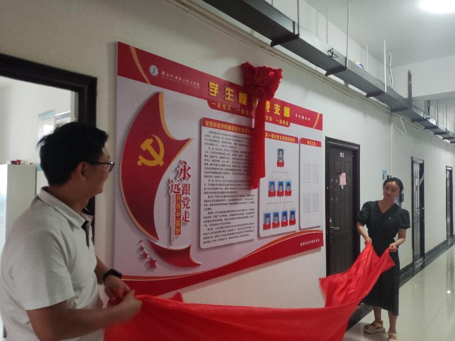 在热烈的掌声中,公司党支部书记薛媛丽,公司党支部副书记、经理马海彦,为员工模拟党支部揭牌。一抹红色缓缓落下,这一严肃而庄重的动作,象征着员工模拟党支部正式成立。