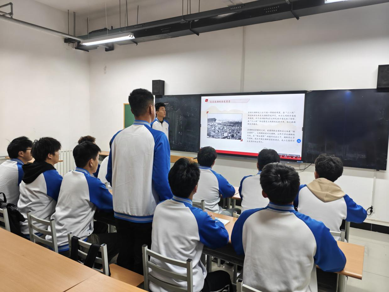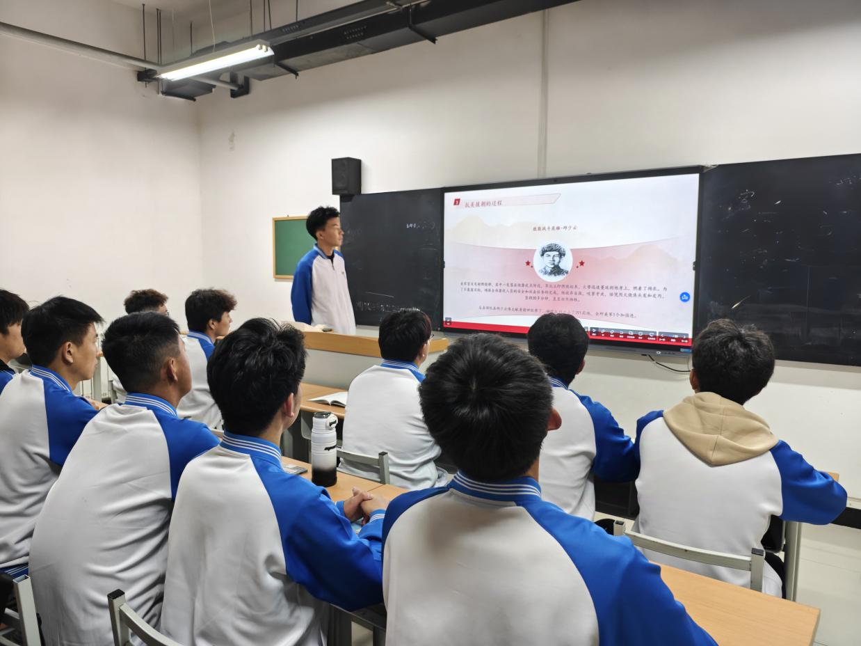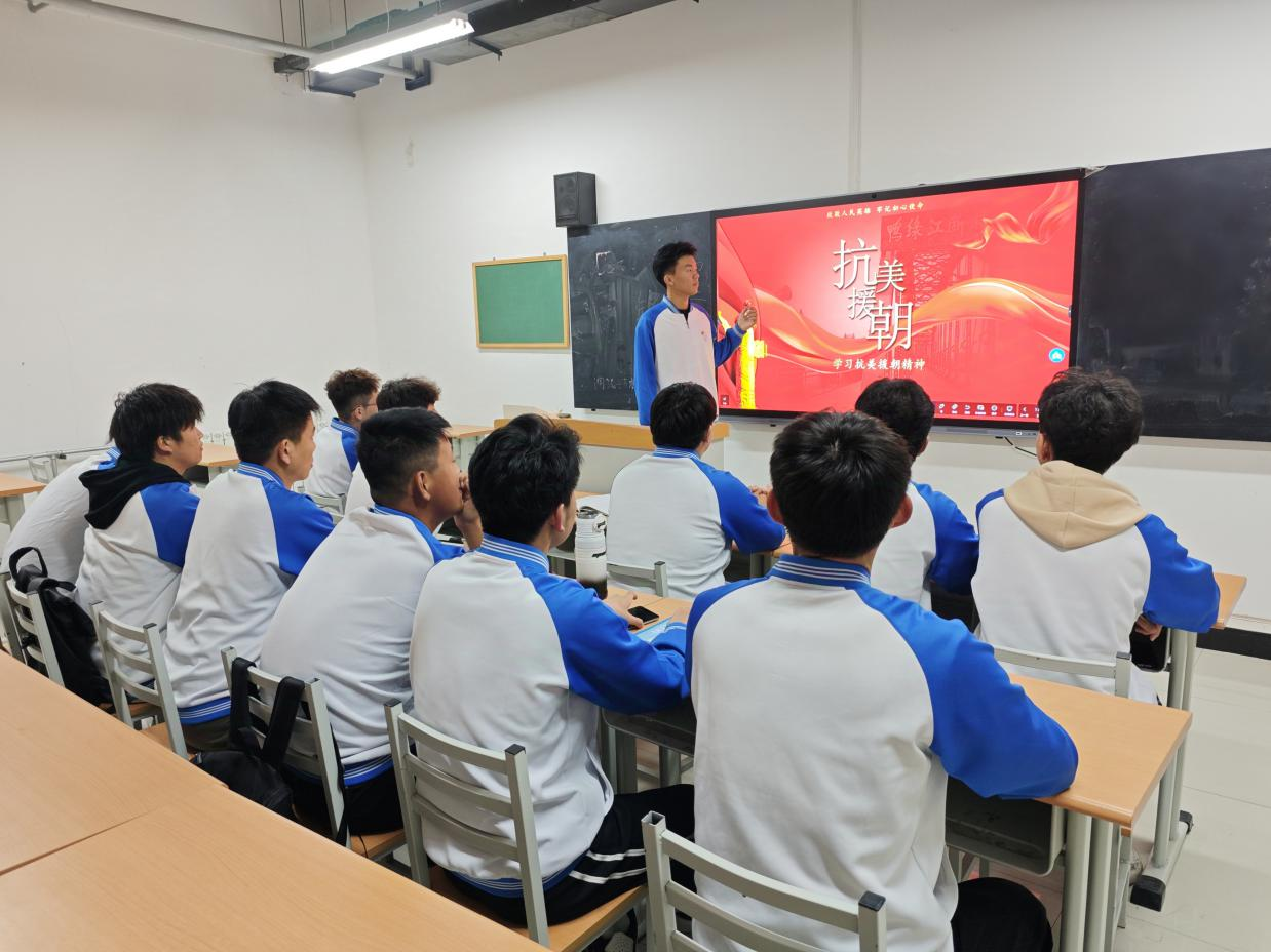 紧接着,袁硕同学借助PPT,带领大家进一步深入学习抗美援朝历史,从复杂的战争背景到关键的重要战役,从可歌可泣的英雄人物到震撼人心的伟大精神,袁硕同学的讲解细致且富有感染力,让同学们对抗美援朝这段历史有了更为全面、深刻的认知。
