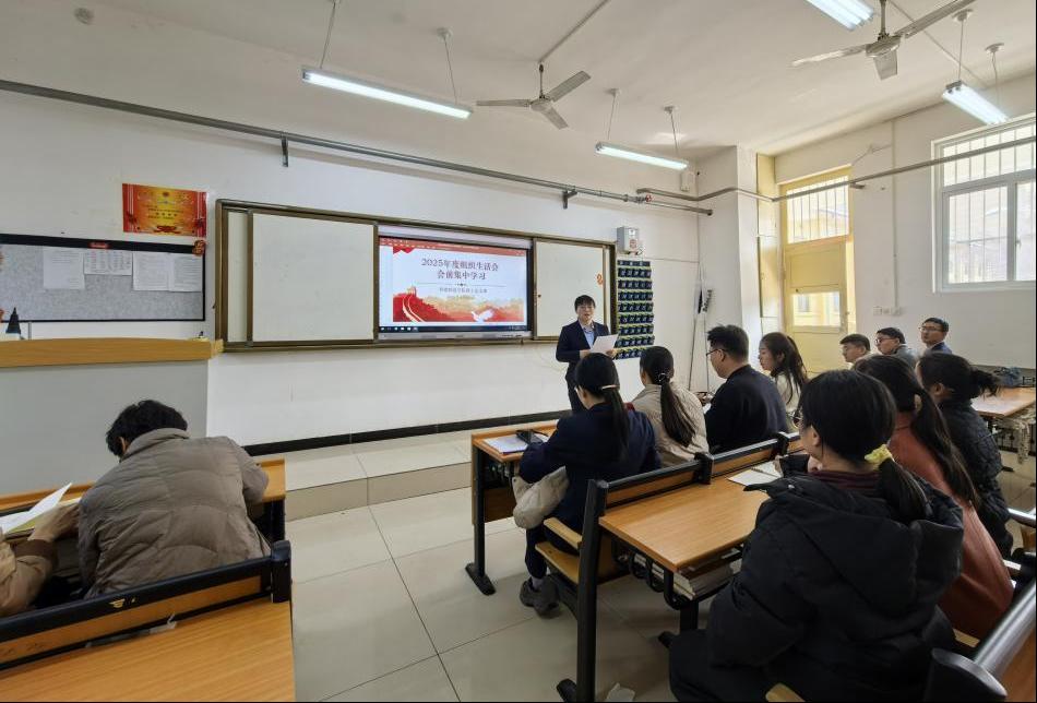 为确保2025年度组织生活会和民主评议党员工作顺利推进,3月11日下午,公司教工党支部在宝福路校区第二教学楼102教室召开组织生活会会前集中学习会,全体教师党员参加会议。
