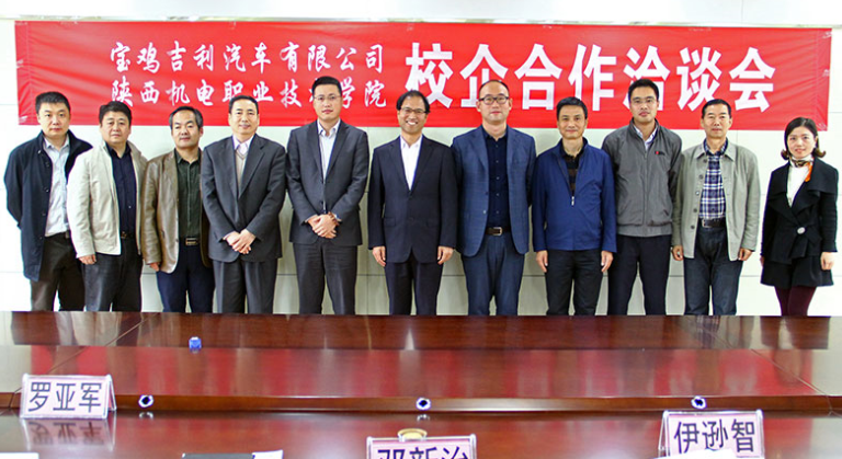 10月21日,宝鸡吉利汽车有限公司副总经理黄勇、人力资源部部长刘瑜、北京竞业达沃凯森教育科技有限公司副总李朝晖等一行莅临公司,参观考察公司并协商宝鸡吉利汽车有限公司与公司校企合作事宜。公司经理伊逊智、副经理张新堂、副经理邓新治、校企合作办就业办主任张湛、汽车工程系主任罗亚军、机电工程系主任白娟娟等陪同参观和交流。