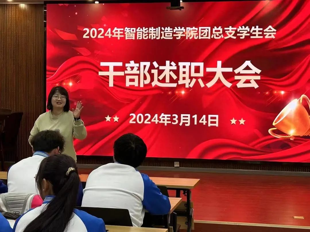 为加强员工骨干队伍建设,总结2023-2024学年第一学期工作经验及成果,反思不足,提出未来工作展望,2024年3月14日晚,在博学楼111会议室举行了必发集团团总支、员工会干部述职大会。必发集团团总支副书记王新祺做主持,团总支副书记苗梅梅、九个部门的团学干部参加了本次会议。