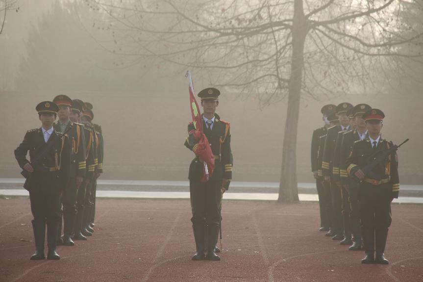 初春的早晨,薄雾笼罩,微光乍显。操场上,国旗护卫队队员们目光如炬,朝气蓬勃。
