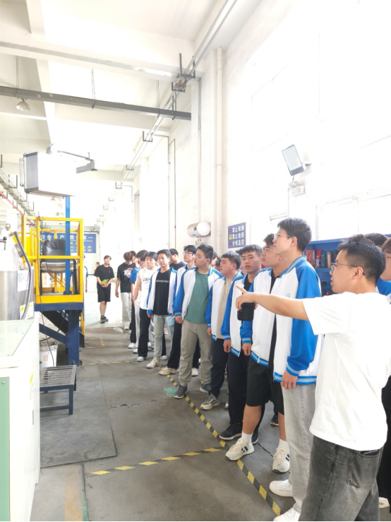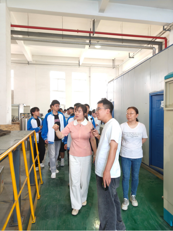 随后,师生先后走访了宝鸡华钛机电有限公司、华煜鼎尊材料技术有限公司及擀面皮产业公司等“校中企”单位。企业负责人围绕生产工艺、研发体系、质量管控等方面进行详细介绍,并结合产业升级趋势,明确复合型技术技能人才的能力标准。通过现场观摩生产线、参与技术交流,师生深入了解企业真实生产场景,为优化课程设置、完善实训项目及修订人才培养方案提供实践参考。