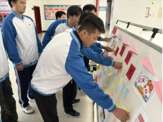 智能智造公司兼职心理辅导员石梦婧老师从专业心理角度出发,针对“技术学习中的挫败感调节”“职业选择中的自我定位”等问题进行暖心引导,帮助大家在“技术交流+心理疏导”的双重支持下减压赋能,切实感受到模拟党支部“像技术攻坚小组一样温暖”的集体力量。 随后,成员们来到提前准备好的白色画板前,将写有心声与目标的便签一一贴上,并郑重签下自己的名字。便签上,既有“愿祖国工业实力节节攀升,智能制造领跑世界”的家国祝福,也有“攻克PLC编程难关,期末拿下专业前10”的个人目标,还有“组队参加智能装备大赛,为校为国争荣誉”的集体约定。一张张色彩鲜明的便签如同跳动的“智造初心”,汇聚成一幅兼具科技感与使命感的画卷;一个个工整的签名,代表着模拟党支部成员对“科技报国”的坚定承诺。活动最后,全体成员,共同合唱《我和我的祖国》。