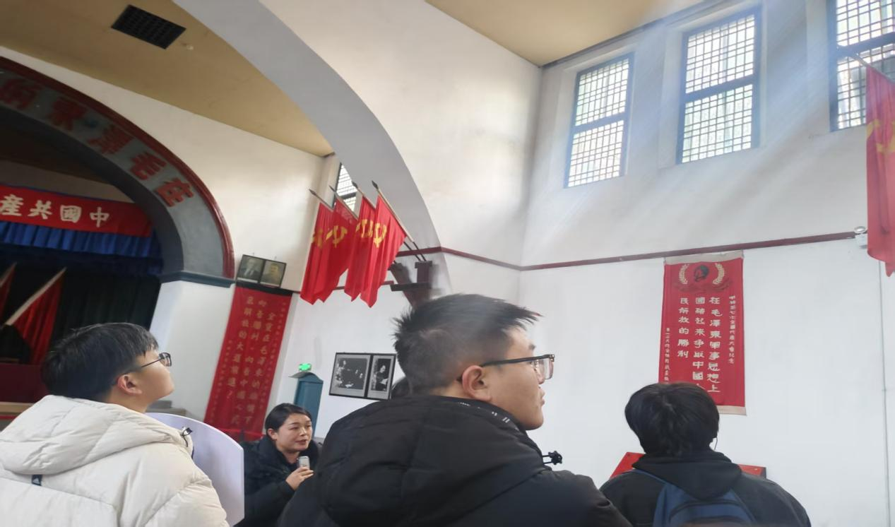 随后,师生们前往杨家岭革命旧址。在这里,大家依次参观了中共中央办公厅旧址和毛泽东、朱德等老一辈无产阶级革命家的旧居。在著名的中央大礼堂——中国共产党第七次全国代表大会的召开地,同学们驻足良久,仿佛穿越时空聆听历史回响,深刻体会到“解放思想、实事求是”思想路线的磅礴伟力,以及全党空前团结与统一的深厚底蕴。
